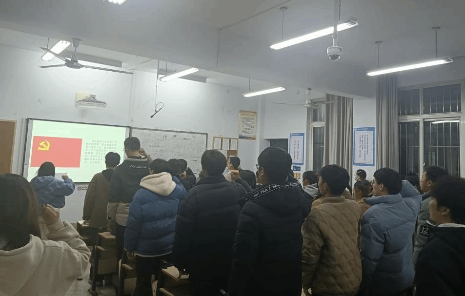 会议伊始,各支部书记清点到场正式党员、预备党员以及发展对象的人数。首先由入党介绍人分别介绍各位同志一年来的学习、工作情况,然后由各位党员对每位同志的表现进行简单评价,之后经各支部正式党员举手表决。此次会议表决通过陈旭等32名同志为中共预备党员。最后,所有党员同志在支部书记的带领下面对党旗进行宣誓。