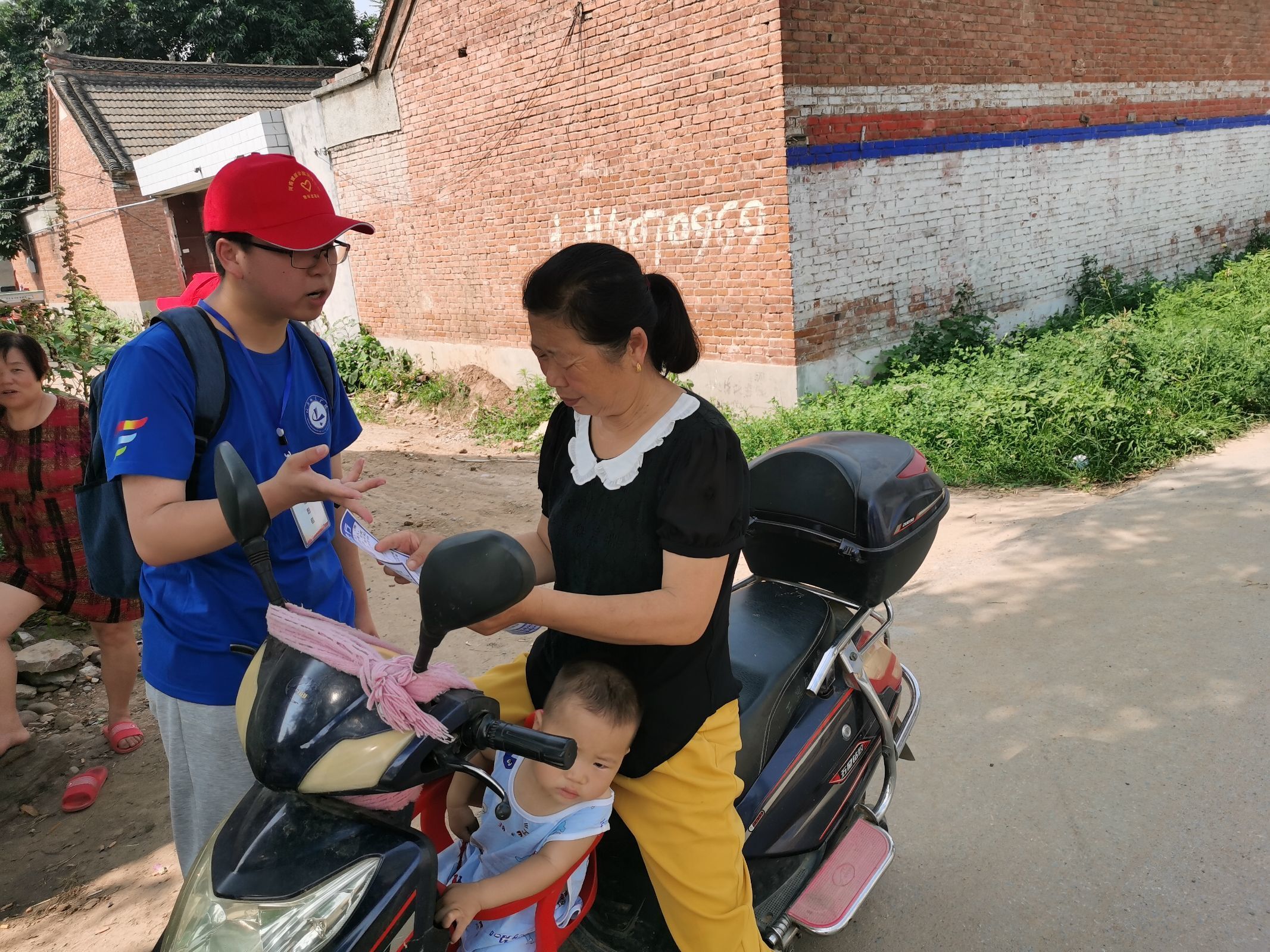 到到目的地之后,团队根据事先计划好的内容开始了本次宣传活动,在基本了解村里面的情况之后,跟村里面书记做好沟通,在其大力支持下,团队成员对国家资助政策全方位、立体化、多层次地对国家资助美德进行政策解读。让老百姓了解现在社会在普通高校建立了以国家奖助学金、国家助学贷款、学费补偿贷款代偿、勤工助学、校内奖助学金、困难补助、伙食补贴、学费减免等多种方式并举的资助政策体系,同时实施“家庭经济困难新生入学绿色通道”,捐资助学的善举。