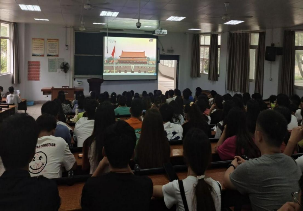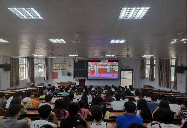 鲜艳的旗帜、庄严的场景、嘹亮的合唱、热烈的氛围,感染着在场的每一位同学。大家聚精会神、目不转睛地观看直播盛况,感怀中国共产党100年来的光辉历程和取得的历史性成就、发生的历史性变革。