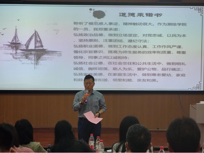 本期道德讲堂分为省吾身、唱首歌、诵经典、学模范、发善心、送吉祥、写寄语七个环节。在主持人的引领下开始此次道德讲堂第一个环节——“省吾身”,根据讲堂主题,主持人主动引导大家“开场三问”,作为父母,面对儿女我有没有做到父母的责任;作为儿女,面对母亲我是否尽到了作为子女的责任和义务;面对共产党的领导,我是否做到问心无愧,做到不忘初心,砥砺前行。全体师生在静默中反省自身。第二个“唱首歌”环节,全体师生起立合唱《歌唱祖国》,用歌声表达对祖国的爱,献礼祖国母亲。第三个“诵经典”环节,威廉体育williamhill艺术团同学合诵篇章《青春无限,党心永存》。慷慨激昂的朗诵过后大家一起观看“那些年央视平台弘扬孝道公益广告”宣传片,一个个感人的片段串起我们内心对孝道的共鸣。随后 2名师生代表谈各自感悟,员工代表江蕙玉从感恩母亲节到感恩共产党发表肺腑之言,教师代表高松峰用最真实、质朴的语言讲述自身成长经历,引发大家对孝道的共鸣。最后公司党总支书记米启超总结发言并带领大家发表承诺,弘扬传统美德,做一个有孝心的人。最后为每一位师生送上一份有意义的礼物,并邀请各位师生在横幅上写下对未来、对祖国的畅想和祝愿。