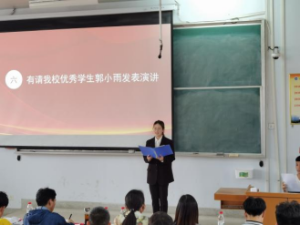 活动开始,由党总支副书记卫柳艳讲话,为同学们介绍开展本次活动的意义,并希望同学们认真听取榜样事迹,汲取榜样力量,发扬榜样优良品质,提升个人素养。随后“青春榜样”先进事迹报告团五位同学依次上台做演讲。五位同学分别从展现主人翁意识、敢于表达自己、自立自强、积极拼搏、树立梦想五个方向展开叙述,以自己为例,向同学们介绍了他们精彩且充实的老员工活,并希望同学们找到自己的学习方向,向目标努力拼搏。最后团学办主任许东辉对活动进行总结发言。