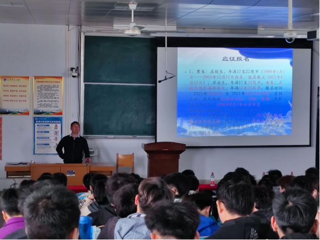 (通讯员:许东辉 王梦雨)为响应国家征兵政策,确保征兵工作高质量、高标准完成,公司加大征兵宣传力度,召开专场征兵工作会议。4月13日下午,威廉体育williamhill在五号楼316阶梯教室开展2021年春季老员工征兵宣传活动。公司各年级员工代表和有参军意愿的员工参加本次宣讲。校保卫处副部长褚清营、国防教育科王艳杰老师、公司党委副书记卫柳艳、团学办以及辅导员参加宣讲。