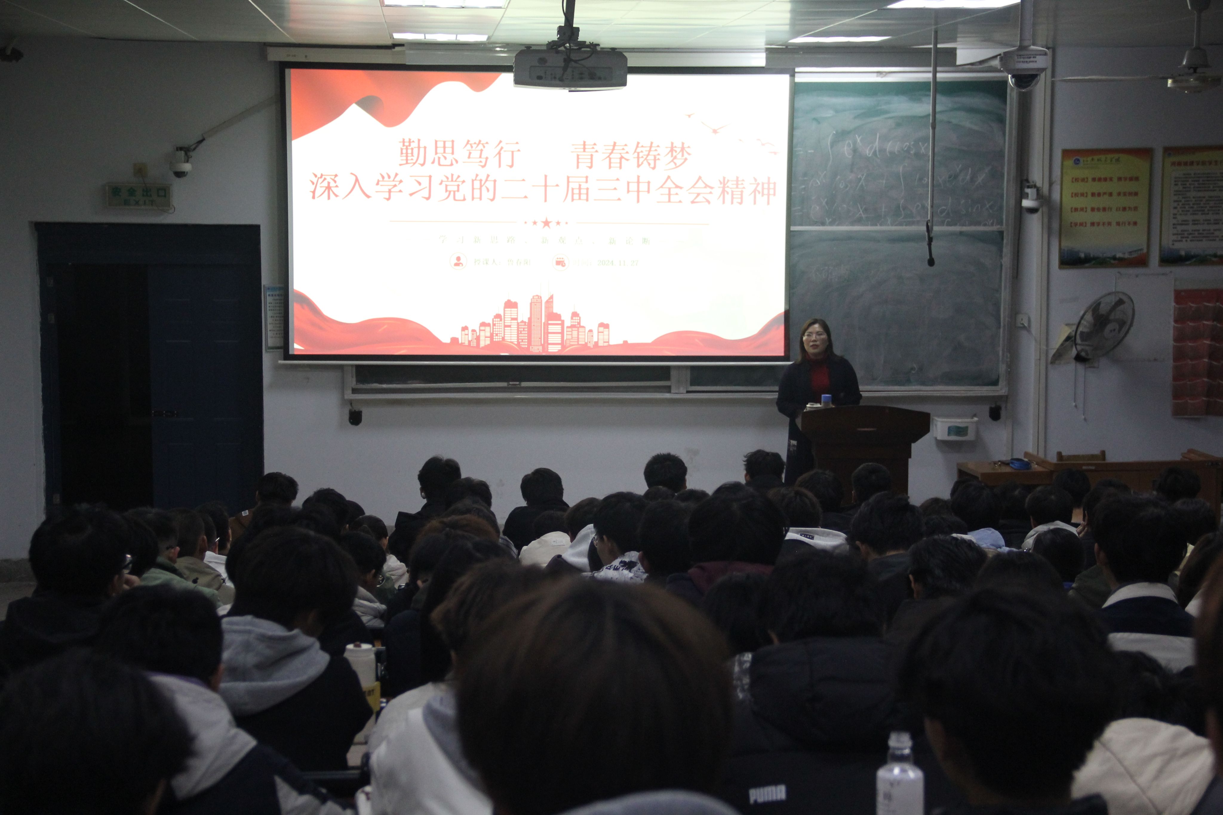 为全面深入学习领会党的二十届三中全会精神,引导青年员工把思想和行动统一到全会精神上来,威廉体育williamhill于11月27日在5号教学楼314教室举行党的二十届三中全会精神宣讲。经理鲁春阳做主题宣讲,200余名员工参加宣讲会。