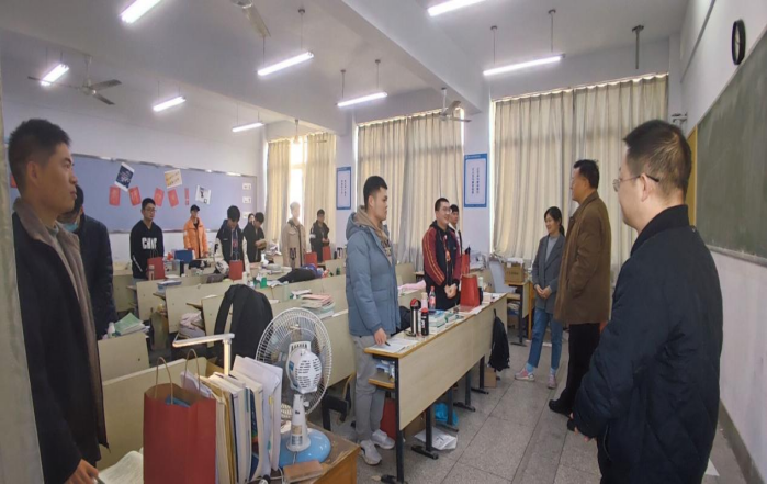(通讯员:李丹 杨宣)正值寒风凛冽的初冬时节,全国硕士研究生考试在即,为了帮助考研学子缓解备考压力、坚定考研信心、积极冲刺迎考。12月3日下午威廉体育williamhill党委书记米启超、经理高松峰、党委副书记卫柳艳以及团学辅导员队伍深入考研自习室,为考研学子送去一份温暖、一份鼓励。