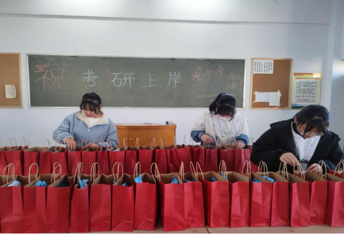 在自习室,党委书记米启超详细了解了考研员工的学习生活情况,鼓励同学们坚定信心、保持恒心,抓住最后的关键时期,调整好身体和心理状态,用最自信的态度迎接考试,如遇困难及时向公司反映。接着,老师们为考研学子送上公司精心准备的暖心礼包,里面包括寓意“心想事成”的橙子、学弟学妹们的祝福贺卡以及一些防疫物资,让同学们真切感受到公司对考研学子的关心和重视。