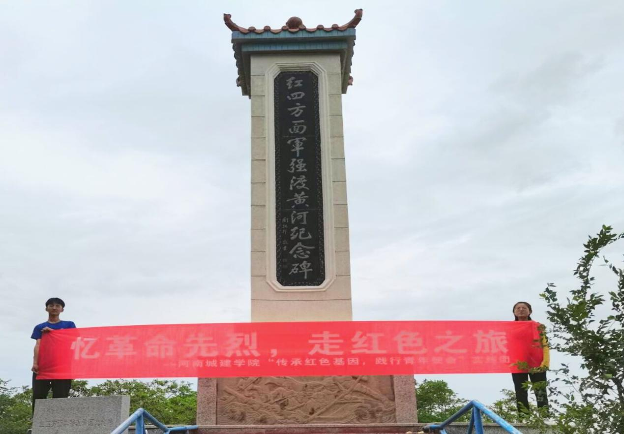 图为实践团成员在红四方面军强渡黄河纪念碑合照