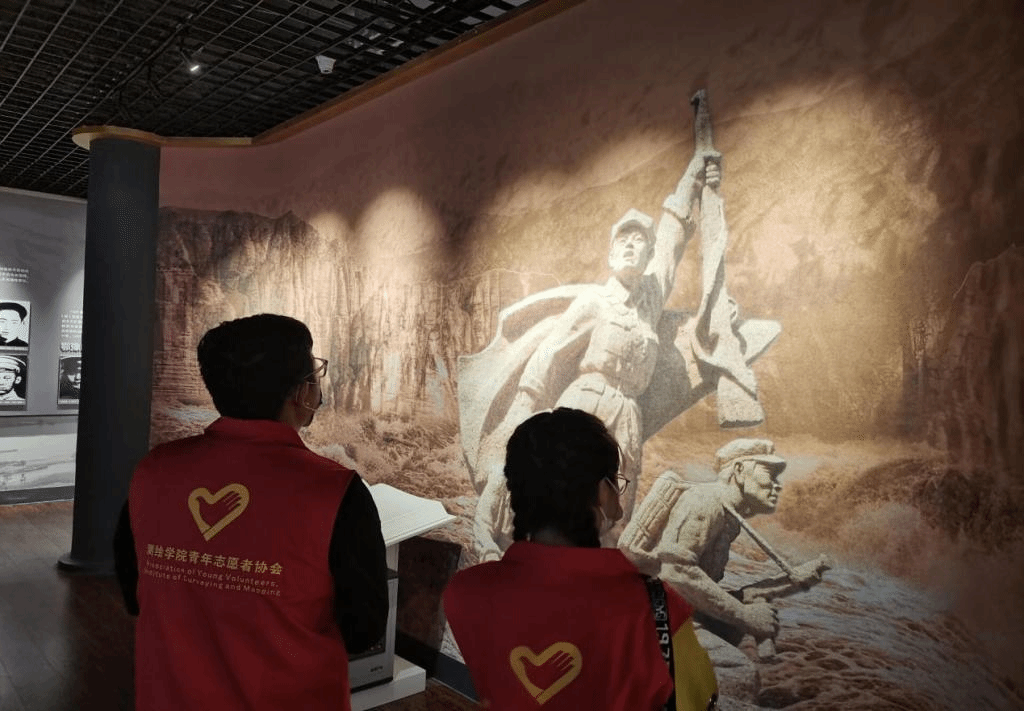 图为实践团游览展馆内的展陈内容,接受红色教育,重温党的光辉历史
