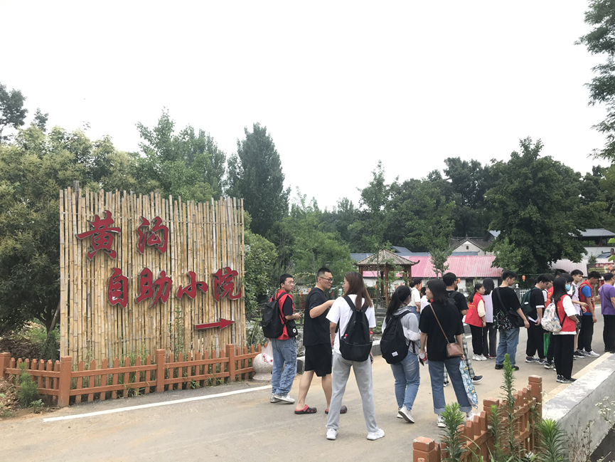 7月4日下午,陈书记带领志愿者们参观了黄沟村的农业园和村庄文化宣传设施,就着黄沟村村庄规划图(2019-2035)对黄沟村的土地利用进行了多方面讲解,重点介绍了当地主导产业和特色产业的发展方向,还向志愿者们宣传了黄沟村的绿色发展理念。黄沟村地处鲁山县西南潜山区,山地南北延伸,一条小河穿流而过村庄中心,在村庄发展成功之前并没有集体经济产业,村民们收入低微。近年来,黄沟村因地制宜挖掘本土特色,有效利用河岸两边的闲置房屋建设特色民宿、发展休闲旅游,以及发展多所自助式农家院,不仅成功摆脱贫困,还建设成了平顶山市一大旅游特色产业。最后,陈书记带领“土地国情调查”实践团参观了黄沟村自助式农家乐小院,志愿者在参观中了解小院的内饰含义和建设理念。