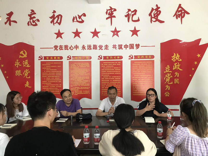 图为陈京玉书记与实践团展开土地国情调查座谈会。中国青年网通讯员 刘雯雯 摄