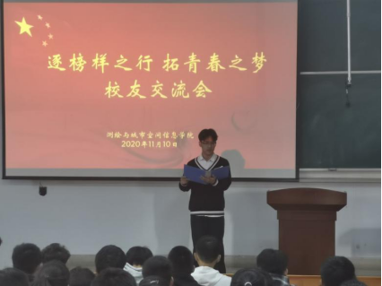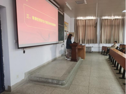 在主持人宣布报告会开始后,首先由优秀员工代表张海雪上台分享他的大学四年生活,并向同学们推荐了可以提高自己技能的软件、公众号和文库。他还向同学们表明大学里学习的重要性,但也不是唯一的任务,倡导同学们在学习的同时也要注意体育锻炼,多方面发展。