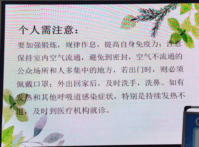 期间,为了保障员工的安全和健康,公司对教学楼进行消毒清理,并根据疫情防控预案开展了一系列防疫基础工作。如公司还利用LED屏对大家进行防疫防护措施的宣传;在员工公寓设置了体温检测点,严格落实进出宿舍“戴好口罩、面部识别、体温检测”等程序;安排员工会熄灯前对返校同学进行体温检测,并发送消毒液对宿舍就进行消杀。