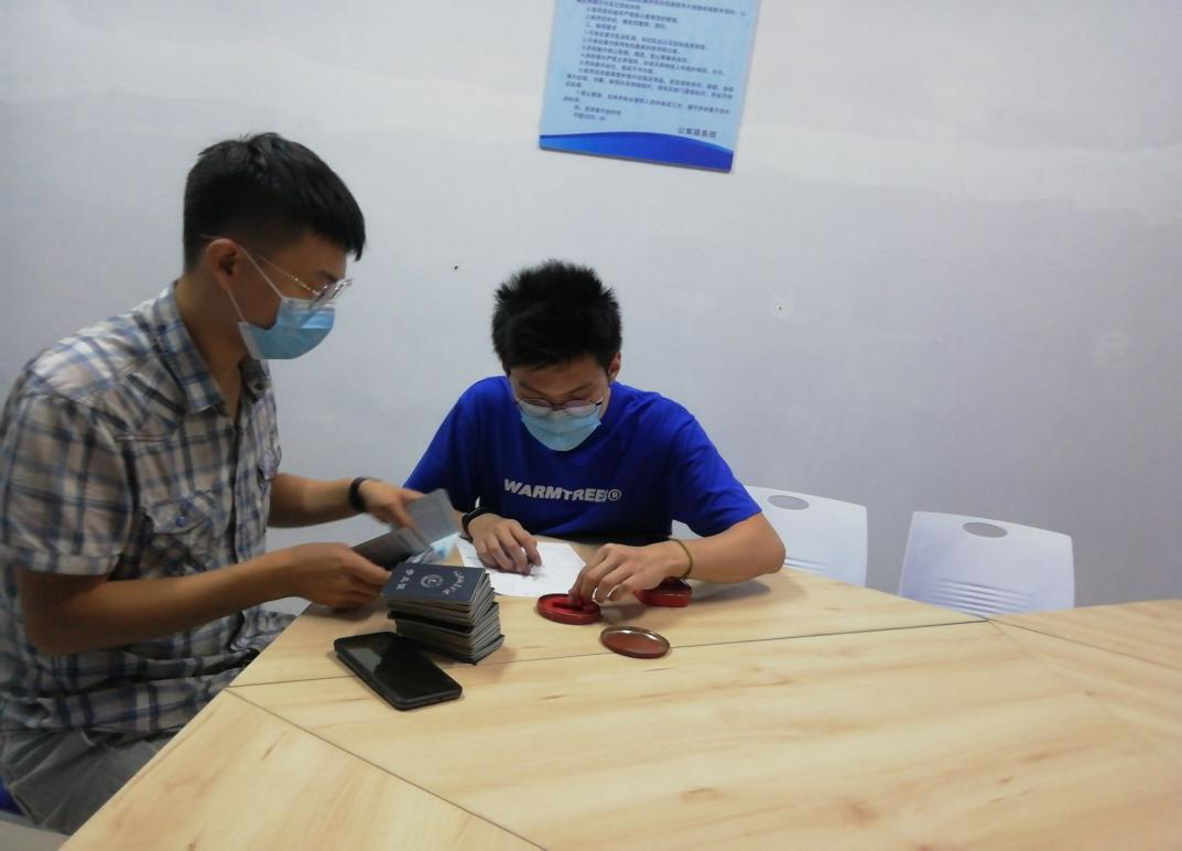 班委进行员工证注册盖章