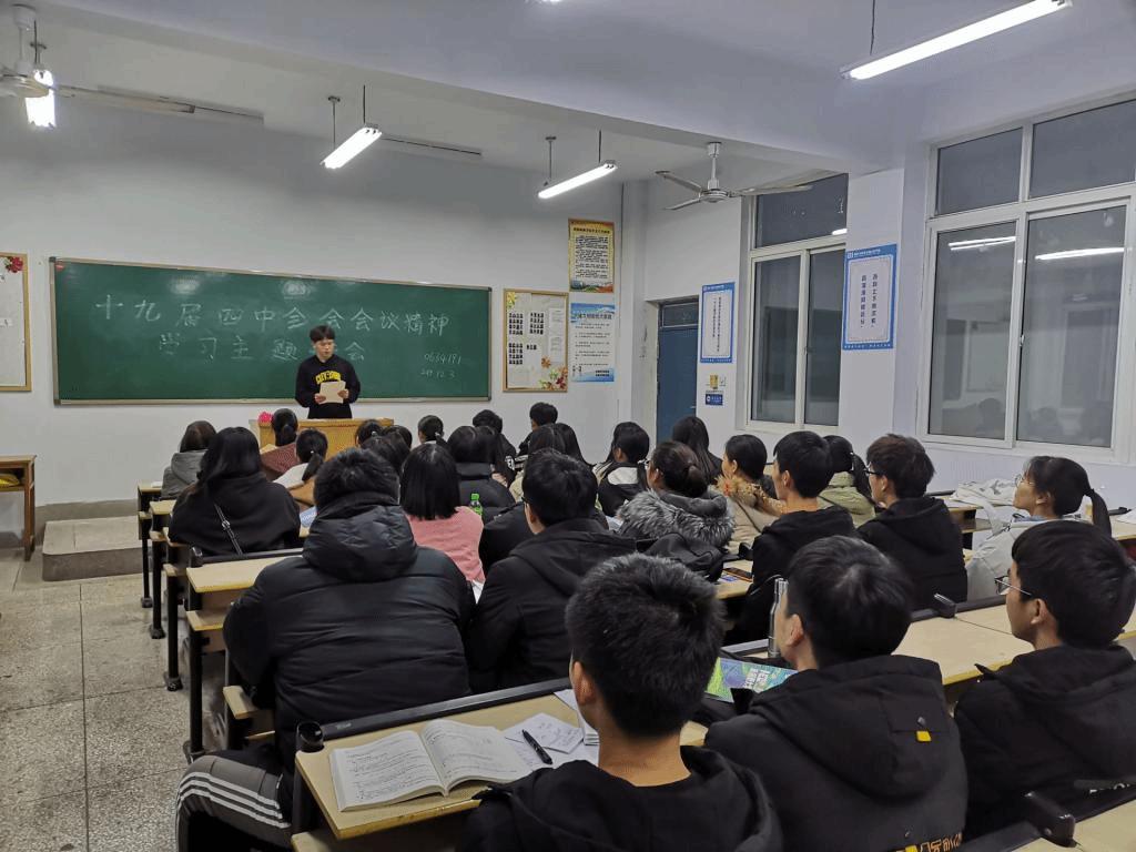 (通讯员:李方圆 王雯迪)为全面贯彻党的十九届四中全会精神,扎实推进“不忘初心、牢记使命”的主题教育,威廉体育williamhill各班于12月3日晚开展了关于十九届四中全会会议精神学习的主题班会。