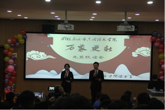 (通讯员 高广晨 陈奥)迎新春,贺元旦。为进一步推进公司文化建设的蓬勃发展,活跃学习氛围,给员工们一个展示自我风采和勇气的舞台,威廉体育williamhill于12月29日晚六点三十分在五号楼214室举办了2019年“万象更新”元旦联谊会。员工会全体成员到场,公司党总支书记吕鹏飞、党总支副书记卫柳艳、团学办主任许东辉及辅导员焦鑫鑫、常莉、艾卫涛受邀观看了本次晚会,为此次晚会增添色彩。