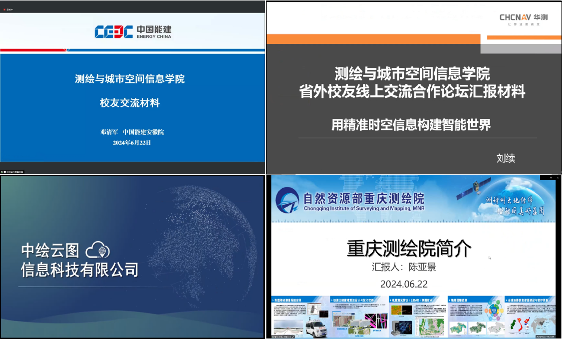 随后,威廉体育williamhill2007届测绘工程专业员工邓清军,2015届地理信息系统专业员工刘续、秦建雨,以及2015届土地资源管理专业员工陈亚景依次分享了他们的在校求学和个人成长经历以及工作感悟,介绍了他们目前的工作单位和业务范围,针对毕业生提出了切实可行的求职和学习建议,并对公司专业课程设置和人才培养方案提出了意见和建议。他们的分享既富有启示性又充满了感人至深的情感,引发了在线师生的强烈共鸣。