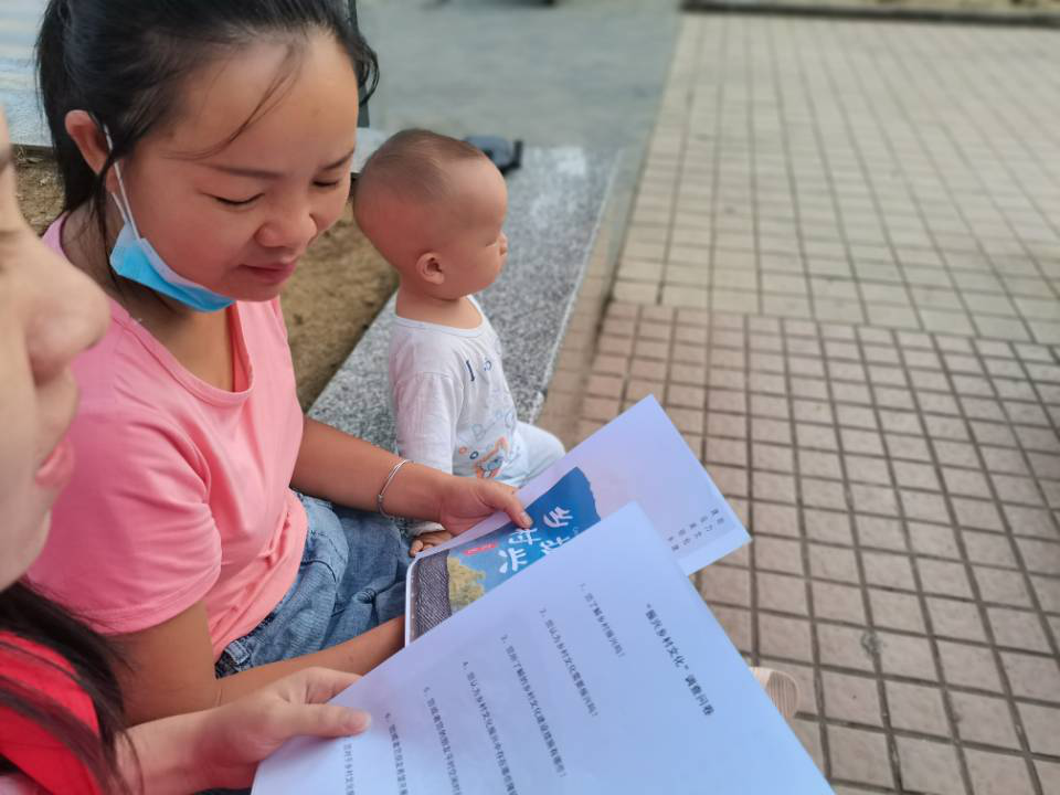 服务团成员不畏惧炎炎暑气,走街串巷地发放“振兴乡村文化”活动海报并大力宣传本活动,对于不了解本活动的百姓进行讲解并解答他们的疑虑,通过问卷调查认真记录百姓给予本活动的建议与期许,并且当天在镇上的文化广场举办打“乒乓球”活动。经过服务团成员地积极动员,不少百姓积极参加举办的打“乒乓球”活动,更充分调动农民群众积极主动参与建设乡村文化事业的热情,从而把全体农民的积极性、主动性和创造性凝聚到社会主义新乡村建设上来。