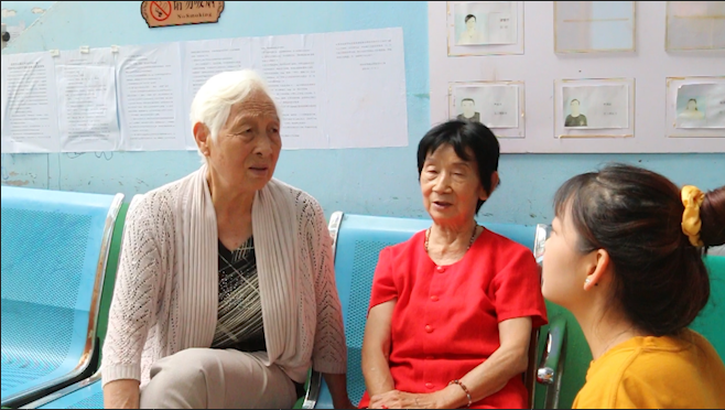 志愿者和老年公寓内居民亲切交谈(中国青年网通讯员 罗晓昀 摄)