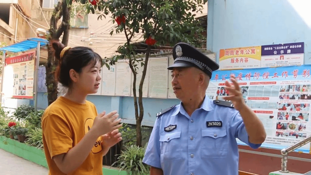 志愿者向公寓管理人员就老人走失相关问题进行调研(中国青年网通讯员 罗晓昀 摄)
