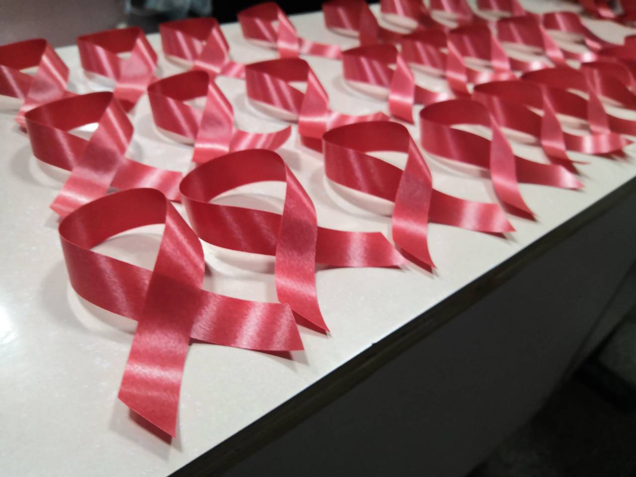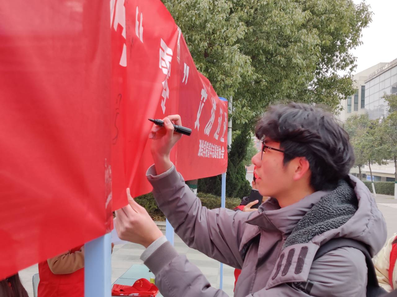 威廉体育williamhill的青年志愿者邀请同学们做关于“防艾滋”的问答题,在问答过程中志愿者们为同学们讲解关于预防艾滋病的知识,解答群众咨询,通过现场讲解,让员工对艾滋病的传播途径、预防措施和正确与艾滋病人相处等方面的有了更深入的了解,有效消除员工对艾滋病的恐慌心理,引导员工给予艾滋病人更多的关爱,让更多的人认识艾滋病,参与活动的同学在做完问答题之后可以在条幅上签上自己名字并会获得由青年志愿者们手工制作的红丝带。