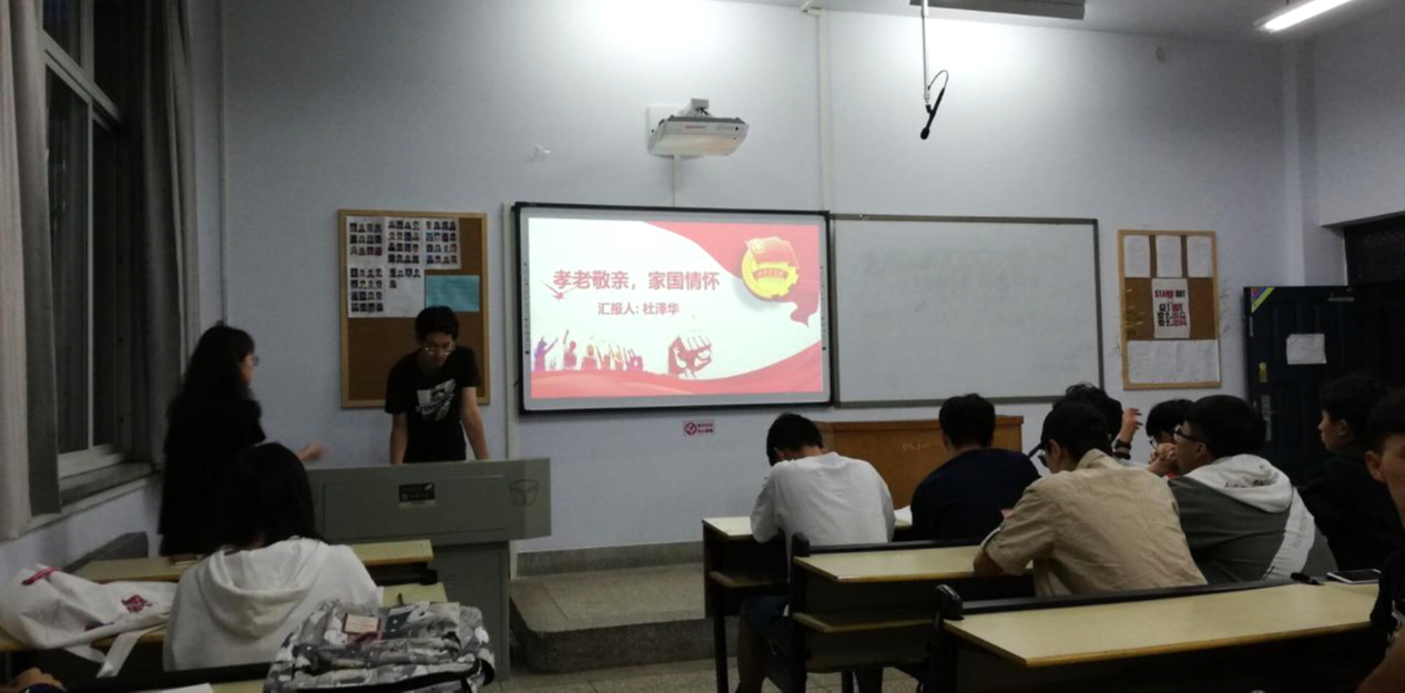本次团日活动由团支书带领同学们重温习近平主席的深情话语,并观看了有关孝老敬亲的小品故事,从中总结了为什么要孝敬老人和优良家风对我们社会的积极影响乃至对整个民族和国家的积极影响,让同学们深刻感悟到没有国家的繁荣发展,就没有千千万万家庭幸福美满的道理。