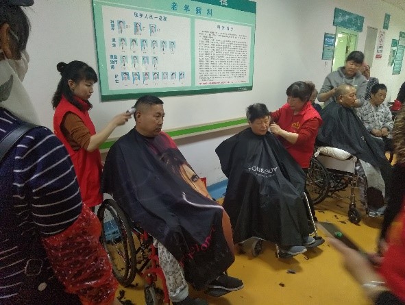 志愿者们于下午两点来到平顶山市中医医院,他们分别为住院老人理发、打扫卫生、打开水、聊天谈心等。预计两个小时的志愿服务活动不知不觉进行了四个多小时,虽然每个志愿者都很疲惫,但看到老人们满脸的笑容却又异常满足。