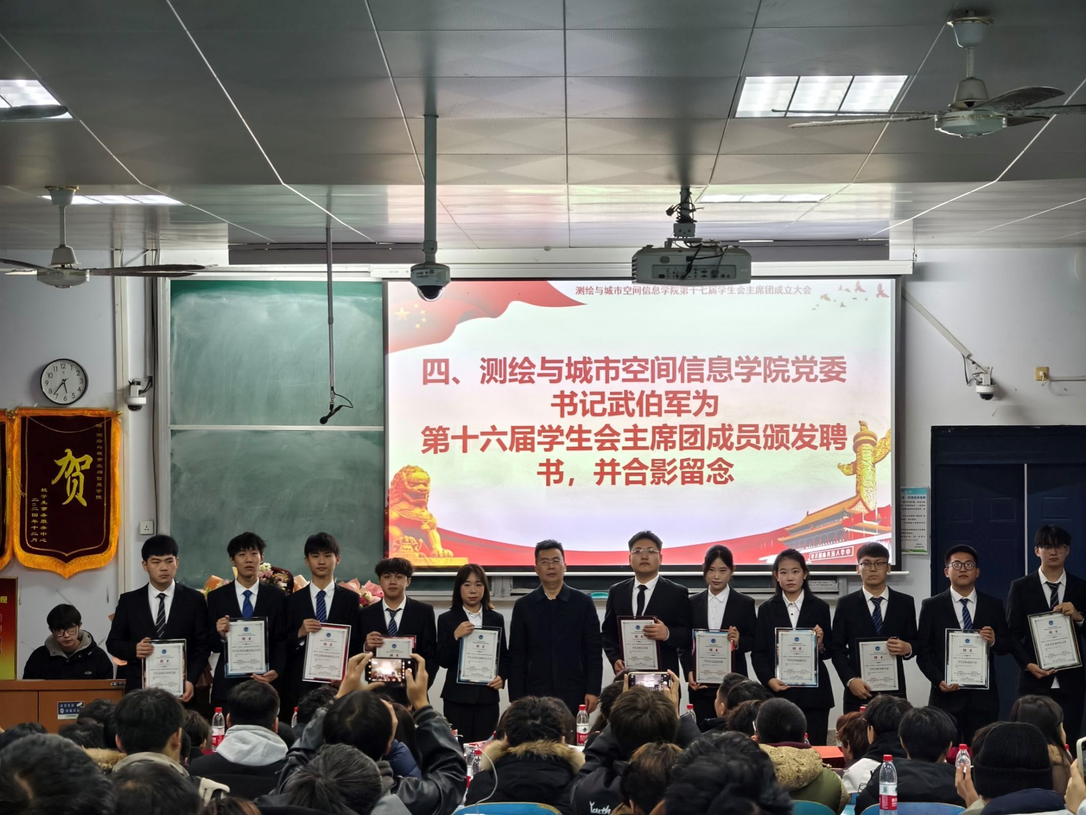 (党委书记武伯军为第十六届主席团成员颁发聘书并合影留念)