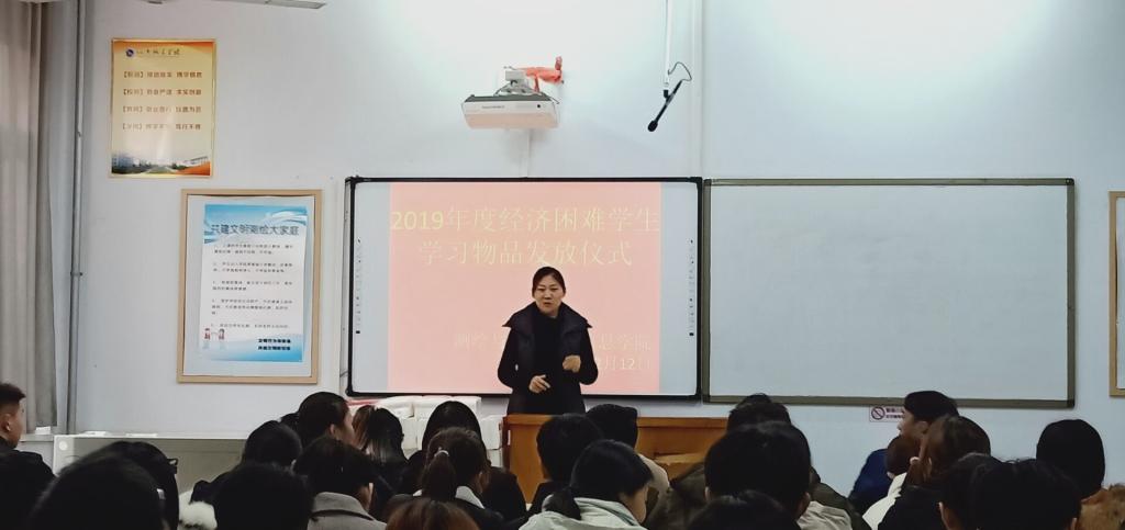 (通讯员:许东辉 张雅)威廉体育williamhill为做好资助工作,帮助家庭经济困难员工有更快乐健康的学习生活,于12月12日中午,在5号教学楼110教室举行“落实精准扶贫政策,发挥资助育人作用”的困难生资助活动。公司党总支副书记卫柳艳、团学办任许东辉、辅导员常莉、李方圆以及本次给予资助的90余名员工参加,活动由许东辉主持。