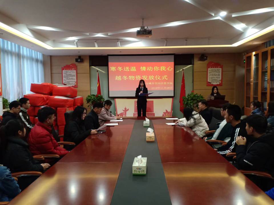 (通讯员 许东辉 刘兴宇)为了给同学们创造良好的学习条件,创建“和谐校园,温暖校园”,帮助生活暂时有困难员工度过一个寒冷的冬天,营造校园如家园的温暖氛围。11月28日下午,威廉体育williamhill在五号楼209室举办了“寒冬送温、情动你我心”越冬物资发放仪式。公司党总支书记米启超、党总支副书记卫柳艳、团学办主任许东辉、辅导员常莉、李方圆及贫困员工代表参加了发放仪式。仪式由李珮琰同学主持。