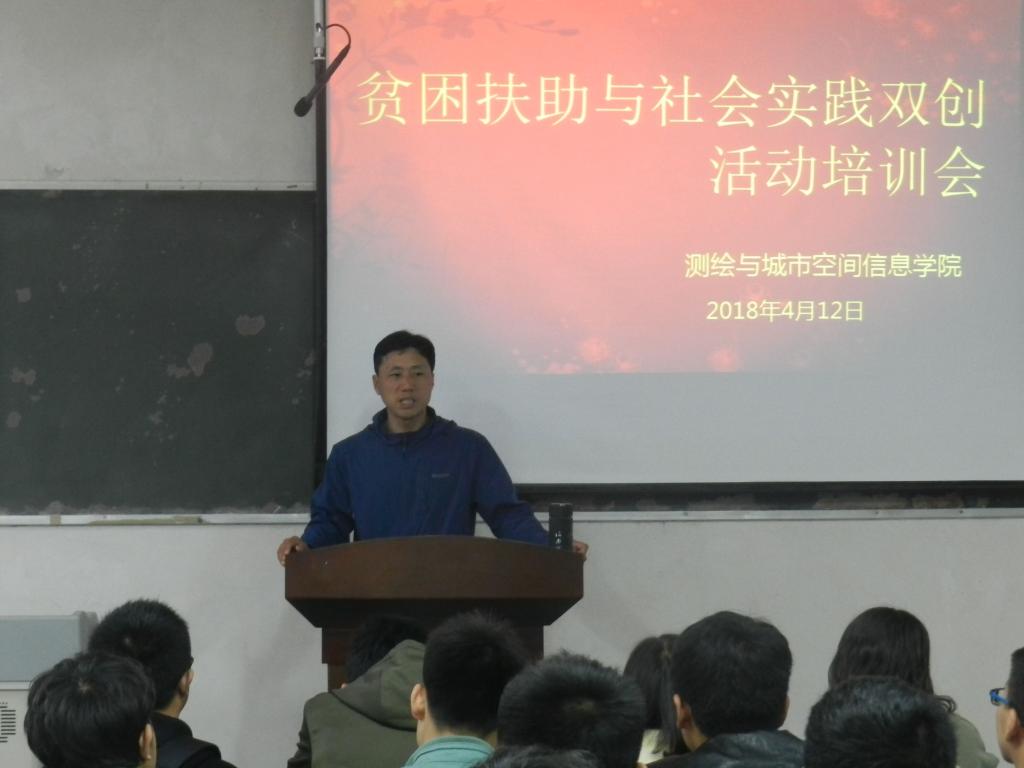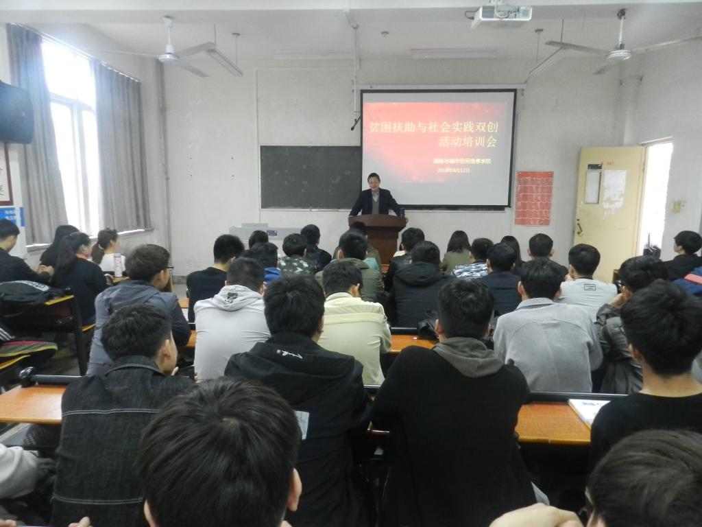 (通讯员 付明 赵云娇)为了给家庭经济困难的员工提供一个勤工助学的机会,也为了使老员工深入的认识所学专业,并把所学习的知识应用于实际中,使理论与实践相结合,培养老员工的工作能力。河南省平顶山市高分中心和威廉体育williamhill员工会联合北京公司举办了校企合作实践活动,并于4月12日在五号楼307教室开展了贫困扶助与社会实践双创活动培训会。威廉体育williamhill副经理兼高分中心主任高松峰老师、团学办主任许东辉老师、GIS教研室杨甲老师,还有部分贫困生和员工会干事参加了本次培训会。