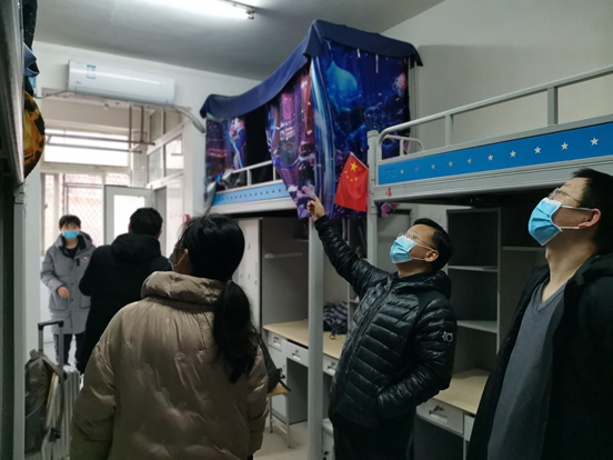 走访过程中,每到一间员工宿舍,院领导都对同学们的报到情况以及宿舍物品的还原归整情况进行了解。由于疫情防控工作的需要,假期当中,员工宿舍临时征用为隔离用房,院领导重点关注了同学们个人物品的还原归整情况,并表示:公司征用宿舍时,老师们秉着“员工的宝贝就是公司的宝贝”的理念,小心翼翼地对同学们宿舍里的东西进行包装保护,然而时间紧、任务重,难免会出现物品磕碰、弄混或未还原到位的现象,希望同学们能够理解。同学们也做出积极了回应,表示对疫情防控工作的理解与支持。米书记赞扬测绘学子有大局观念,具有新时代青年的责任担当和高尚情怀,公司为同学们的理解、配合和支持感到骄傲和自豪。