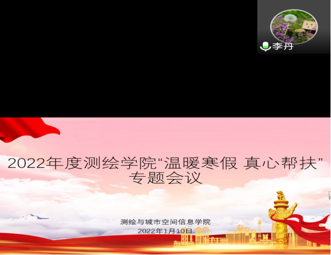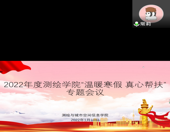 (通讯员:曾亚涛 何沛梓)寒假已至,温暖仍行。为进一步贯彻落实党和国家的资助政策,了解困难员工家庭现状,确保各项员工资助政策落实落细,让家庭经济困难员工度过一个温暖祥和的寒假,威廉体育williamhill于1月10日上午举行了“温暖寒假 真情帮扶”专题线上会议,为即将开展的寒假温暖帮扶专项活动作出细致安排。团学办副主任常莉、辅导员李丹、李磊磊、李方圆、赵苗兴、郭军学及事务中心助理参加了此次会议。