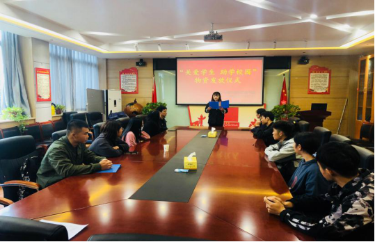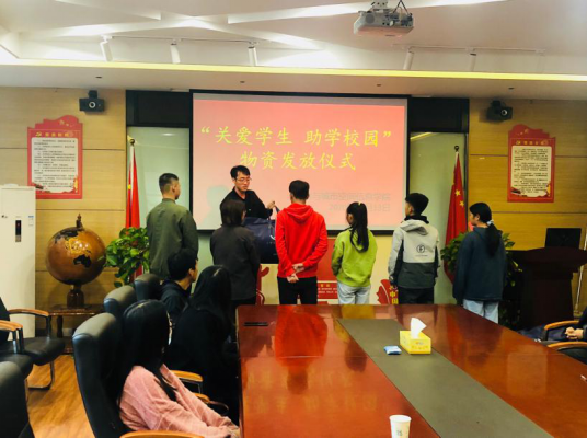 (通讯员:许东辉 何沛梓)威廉体育williamhill为保障新生顺利入学,缓解家庭困难员工入学初期经济和生活压力,于10月13日中午在5号教学楼209教室举行“关爱员工,助公司园”助学礼包发放活动。公司党总支副书记卫柳艳、团学办主任许东辉,辅导员常莉、胡小光、李方圆以及2020级受助员工及事务中心同学参加,活动由马梦微主持。