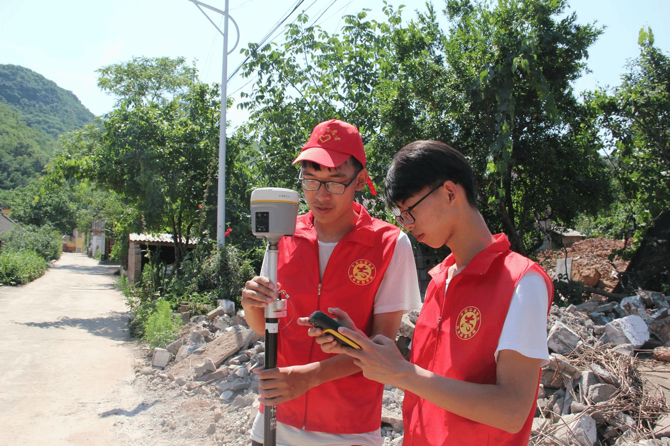 首先志愿服务队员们一起在村内进行实地考察,根据村庄实际情况制定测量计划并明确分组进行人员分工,将五位队员分为两组,三人负责使用全站仪进行测量,另外两人进行GPS测量。志愿者们认真严谨,哪怕是面对荆棘遍布的灌木丛也毫不畏惧,他们说:“我们既然负责了测量这项工作,就应该把最准确的数据呈现出来,怎么能够因为这点‘杂草’就偷懒呢?”晚上8点,天色渐暗,测量队员结束了手头工作聚在一起将今天记录的测量数据放在一起进行比对分析,看到电脑上展示出的土地测量结果,大家纷纷表示今天的努力真的值了!