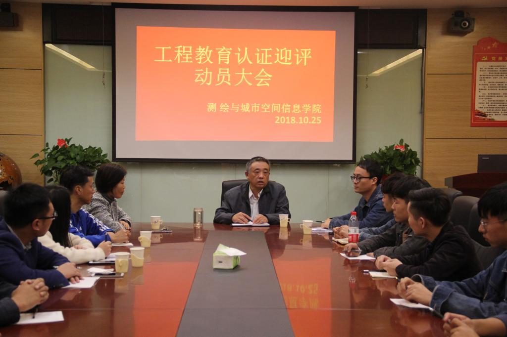 (通讯员 高广晨 陈奥)为迎接测绘工程专业工程教育认证,威廉体育williamhill于10月25日在5号楼209会议室召开工程教育认证迎评动员大会。出席本次大会的有:党总支书记吕鹏飞,党总支副书记卫柳艳,团学办主任许东辉,辅导员艾卫涛、常莉和焦鑫鑫老师以及各班团支书,员工会代表。
