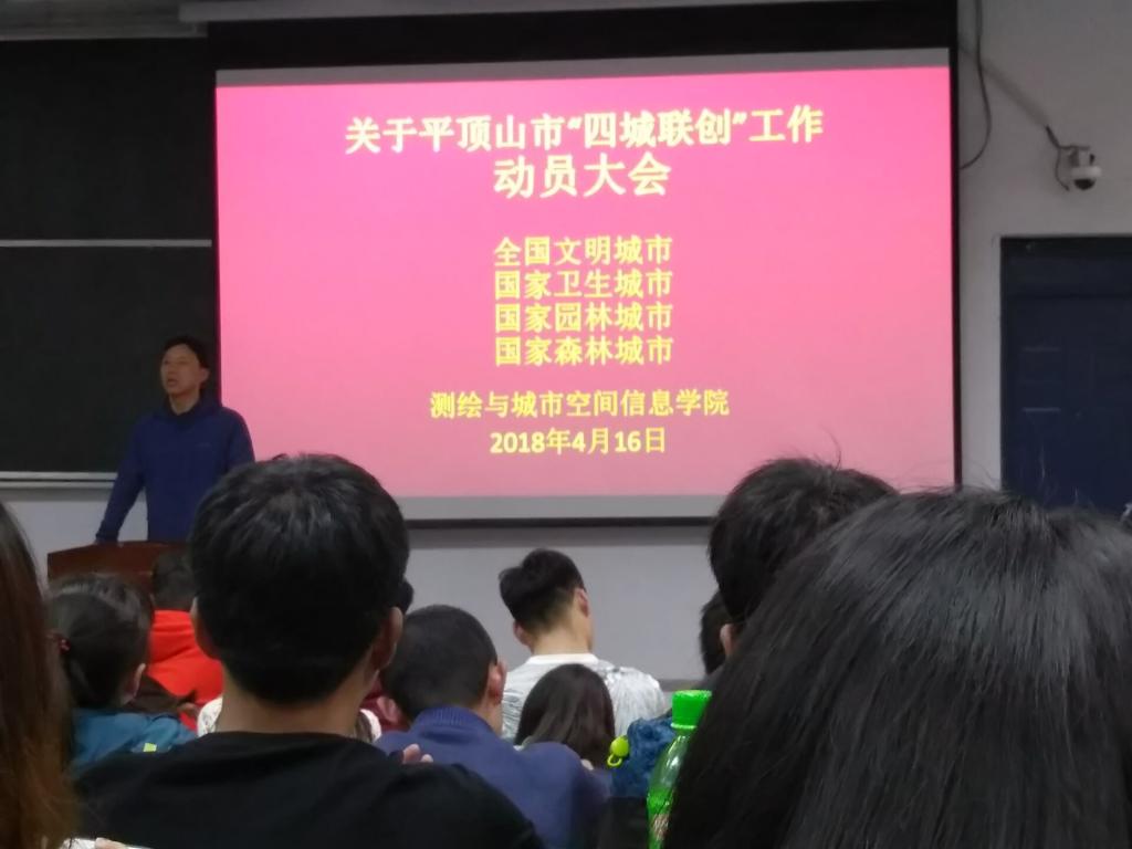 (通讯员 赵云娇)为积极响应政府号召,营造“四城联创”工作良好氛围,4月16日下午,威廉体育williamhill召开关于平顶山市“四城联创”工作动员大会,动员公司上下凝心聚力、紧盯目标,鼓足干劲、合力攻坚,确保国家卫生城市、国家园林城市、国家森林城市复审顺利通过,确保全国文明城市创建取得扎实成效。学工办主任许东辉主持会议并讲话,16级本科班全体同学出席会议。