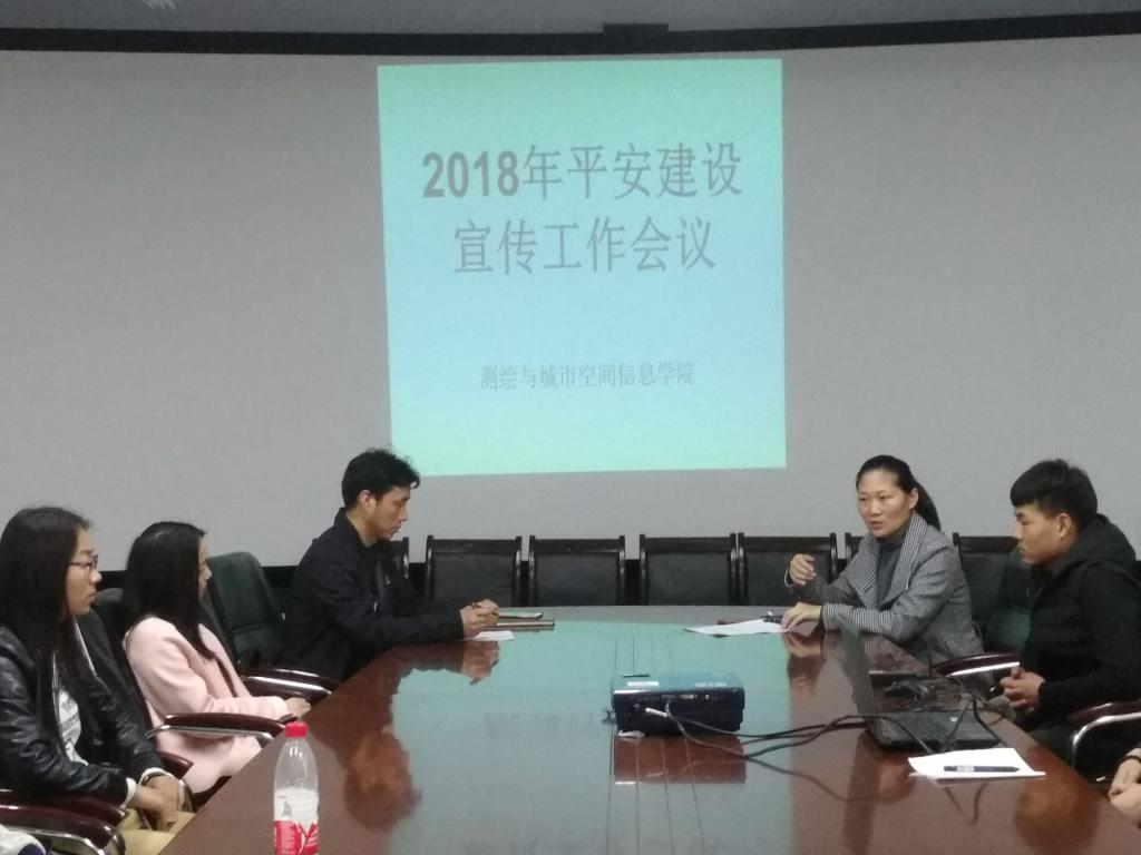 在会上,卫柳艳副书记首先回顾了公司最近在平安建设宣传月中所做的工作,及取得成绩,分析了目前的形势和亟待解决的问题,指出了今后我们需要提高和完善的方面,要求辅导员和员工干部要加强学习贯彻落实“十九大”精神,继续在员工饮食安全、人身和财产安全、宿舍安全、舆情监控、预防电信诈骗、民族宗教事务等提高意识,提升服务,为建设平安校园贡献自己的一份力量,为公司“平安建设宣传月”成功举办添砖加瓦。