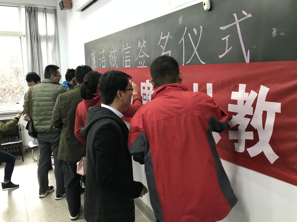 (通讯员 潘传姣)10月10日下午,公司开展廉洁诚信签名仪式,全体教师在一幅“廉洁从政、廉洁从教”的横幅上庄重地签上自己的名字,此举正式拉开公司“廉政文化教育月”的序幕。