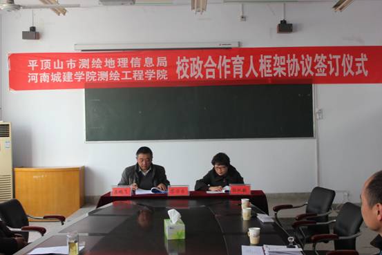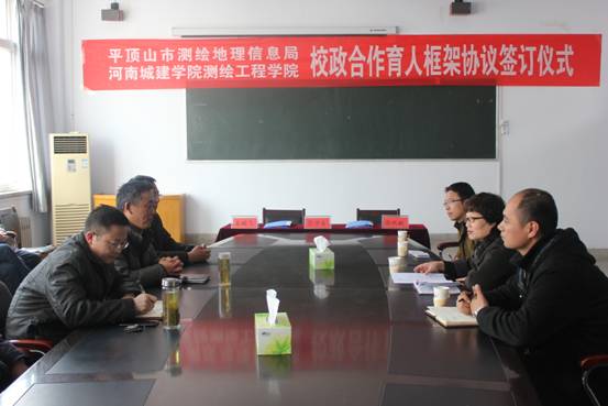 (通讯员 卫柳艳)3月10日下午,围绕校政合作育人、服务测绘地理信息事业和满足产业发展需求,平顶山市测绘地理信息局与威廉体育williamhill测绘工程公司在威廉体育williamhill会议室签订了校政合作育人框架协议。市测绘局局长郭秋敏、公司党总支书记吕鹏飞等出席了协议签订仪式。仪式由吕鹏飞书记主持。