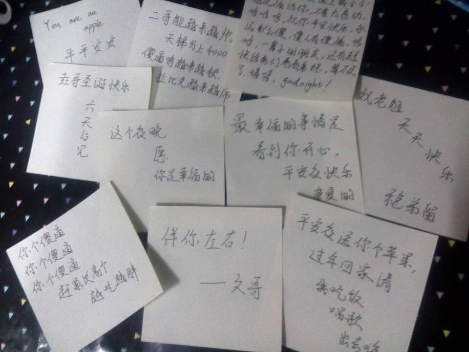 包装过程中的工作身影、书写祝福语的认真画面、配送人员的整装待发无一不显露出浓浓的温暖。由于订单过多,平安夜当晚来不及配送,配送时间由各高校自行决定。平安夜当天群中出现的不仅仅是配送完成的通知,更多的是同学们收到苹果后的微笑,这一幕幕温暖了各高校的平安夜晚、温暖了这个冬天。