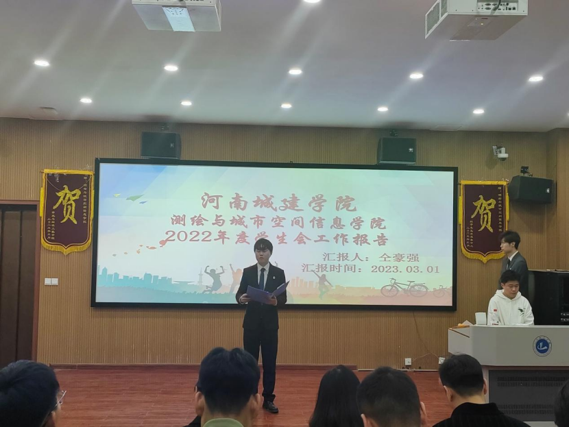 大会在庄严的《国歌》声中拉开序幕。首先由团学办副主任常莉致开幕词。回顾过去的一年,她由衷感激第十四届员工会主席团成员的突出表现,并殷切希望第十五届员工会成员能够肩负起重任,砥砺前行;随后,第十四届员工会执行主席仝豪强向全体成员作述职报告;随后辅导员郭军学宣读了第十五届员工会主席团成员名单;新一届执行主席蒋永泰代表第十五届员工会主席团作就职报告。