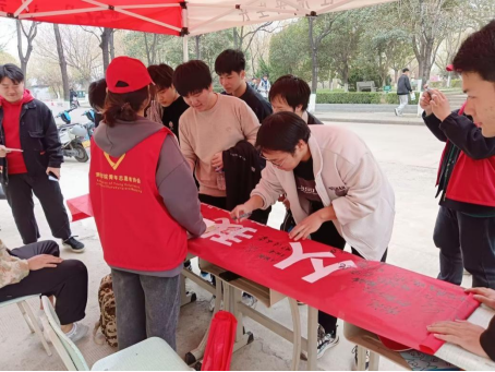世界水日宣传活动开始时,志愿者们在各个用水处,贴上节水标语,例如“节约每滴水,造福全人类”“水是生命之源,节约用水,珍爱生命”等。在宣传点,青年志愿者协会成员讲解世界水日相关知识,邀请路过的同学们答题并在在横幅上签字赠予礼品,让节约意识在同学们心中进一步深种。此次活动在同学们的积极参与中成功落幕,志愿者们整理好物品场地后合影留念。