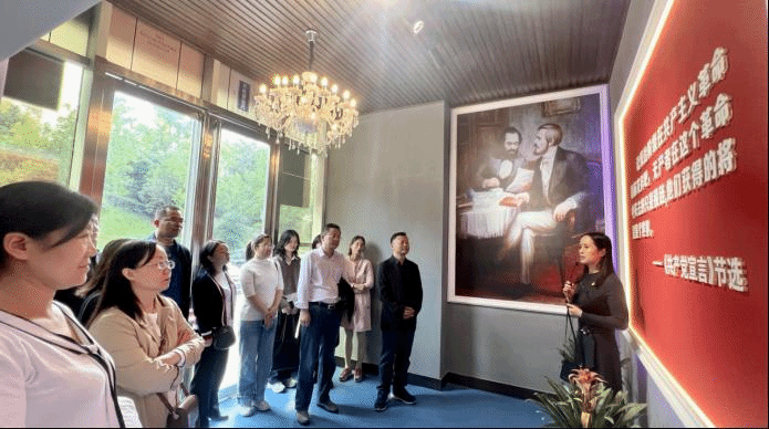 活动中,在讲解员的带领下,大家参观了“国际工人运动与马克思主义的产生”、“马克思主义在中国的传播与实践”等展区。通过珍贵的历史实物和文献资料,大家较为全面的了解了马克思主义的诞生,重温了马克思主义在中国传播、发展和指导中国革命实践的光辉历程,回顾了中国共产党为追求真理和救国救民而奋斗的铮铮往事。参观过程中,老师们认真聆听,积极与讲解员互动。