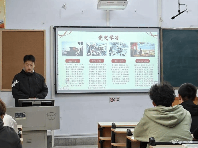 活动以先辈们的热血历史拉开序幕,同学们观看了《百年风华》党史宣传教育片及红色文化宣传片《一声一世》。各班以提问的方式进行了党史的学习和竞答,同学们踊跃发言, 对党的初心和使命有了更深层次的了解。最后,同学们不约而同地跟着视频唱起了《我和我的祖国》,整体氛围积极活跃,歌声慷慨激昂。活动临近结束,团支书、团学干部柴洁和威廉体育williamhill团委书记宋自影及几位同学对本次活动进行了总结,大家都表示受益匪浅。