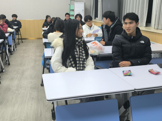 主持人用英文讲解活动规则,宣布活动开始。此后,参与人员按照活动要求分为A女生组,B男生组。A组人员选择位置后就坐,B组同学依次就坐于A组旁边,双方在5分钟时间内通过英文交流了解彼此的性格、爱好等;五分钟后B组顺时针分别到下一个女生旁边就坐,直至所有AB组同学交流完毕。交流结束后,每位同学写下2位今日最想交友同学姓名交由主持人统计。随后,主持人公布交友成功同学名单,邀请互选人员谈谈今日交友感想,并交换联系方式。