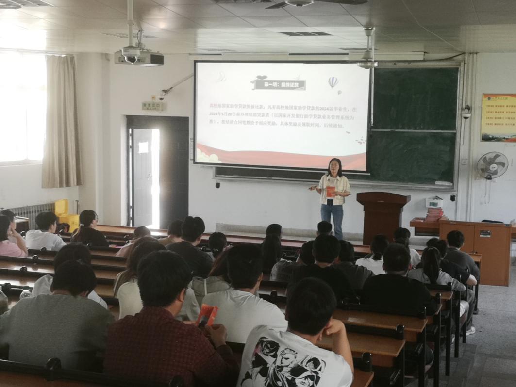 会上,李丹老师主要从提前还款办理流程、毕业确认注意事项、贷款展期办理要求、贷款员工档案整理、征信基本知识、征信在我们生活中的应用以及其他注意事项这几个方面进行了详细讲解,并向同学们强调逾期还本还息对员工自身产生的不良影响,确保每位员工了解相关征信知识、金融常识和国家助学贷款有关政策规定。