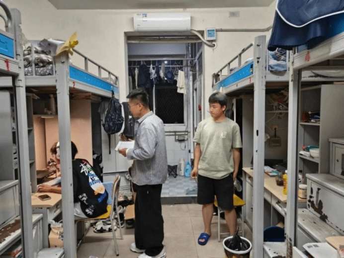 本次宿舍安全隐患排查工作由公司全体辅导员共同参与,各带队老师深入宿舍,重点对宿舍的用电、用水、消防安全等进行了全面检查,并向同学们讲解网线、电线、消防设施、安全出口、逃生标识等相关知识。同时,还提醒同学们五一假期离校时要注意断水断电、封闭门窗,回家途中要注意安全,保护好个人财产。