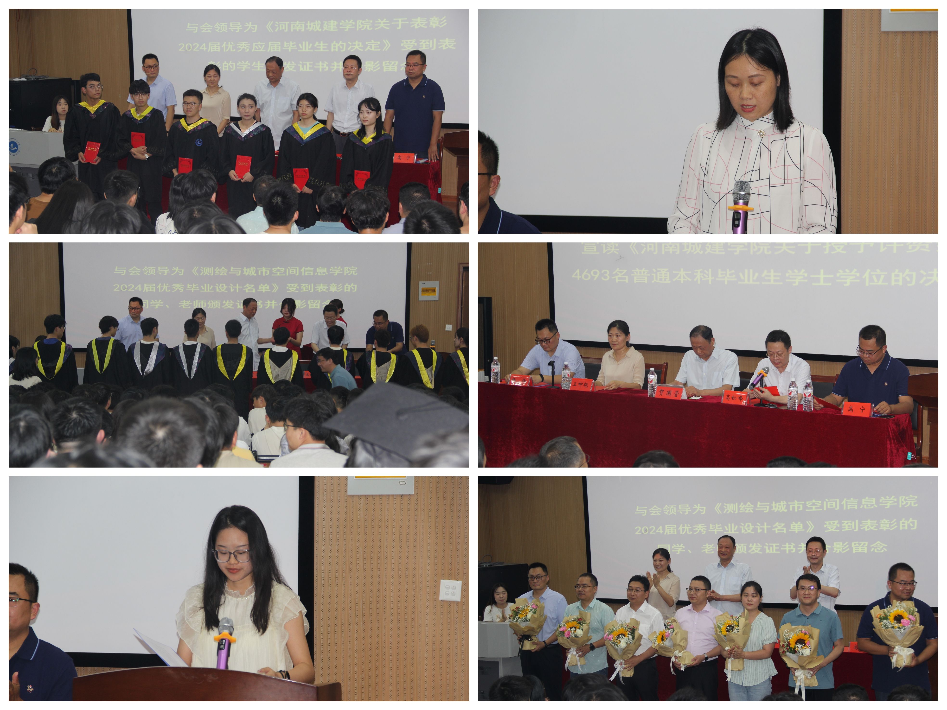 随后,经理高松峰宣读了公司关于授予许赞美等4693名普通本科生学士学位的决定并为公司2024届毕业生拨苏正冠,授予学士学位并合影留念。