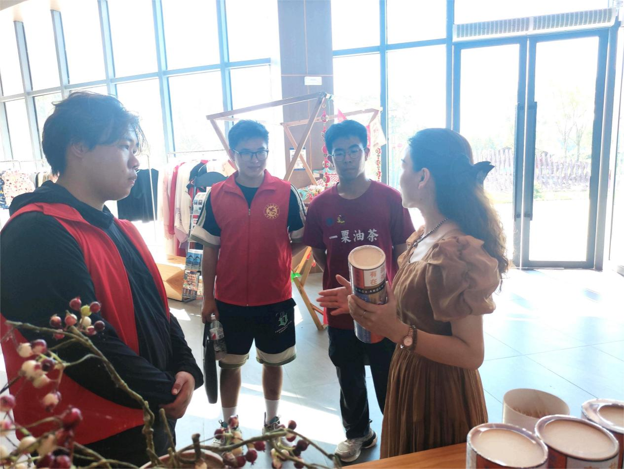 光山县位于河南省东南部,信阳市中部,北枕淮河水,南依大别山,这里温暖湿润,降水适中,自然资源丰富,土壤和气候条件适合油茶生长,是油茶适生的北缘区。2019年9月17日,习近平总书记视察光山县司马光油茶园时指出“路子找到了,就要大胆去做”。习近平总书记对光山这条“好路子”寄予厚望。 忠实践行“两个更好”殷殷嘱托,必须切实增强加快老区振兴发展的使命担当。围绕油茶果,带动一个产业,惠及一方经济,“油茶梦想家”团队走进光山油茶核心产区南王岗村进行深入走访调查。南王岗村的工作人员热情地接待实践团队。听他们讲述:油茶果已经成为当地人民的“幸福果“。工作人员充满自豪的说:习近平总书记的到来,让光山县的广大村民探索油茶的多种用法。小小的油茶果,竟然浑身都是“宝“。返乡创业青年王女士和她的丈夫带着对家乡的情怀,传承起本地油茶蓝染的传统技艺,并积极发挥年轻人的创造力与艺术感,让油茶蓝染与现代时尚相融合,开发出独具特色的油茶果蓝染文创产品,展现出光山县油茶产业的潜力。