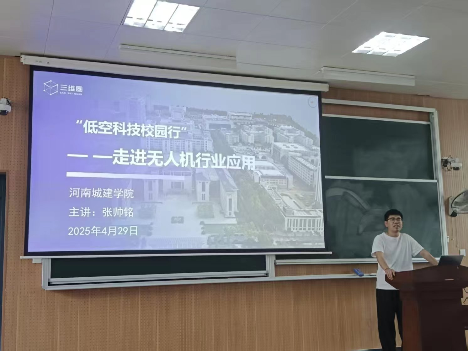 讲座伊始,三维圈公司高级讲师张帅铭从国家低空经济发展战略切入,系统介绍了无人机技术的最新进展及其在测绘、物流、应急救援、智慧城市等领域的应用场景。他结合公司实际案例,展示了无人机三维建模、高精度遥感测绘、低空物流网络建设等技术的落地成果,并强调:“低空经济正成为推动区域经济高质量发展的新引擎,而人才与技术是这一领域的核心驱动力。”在互动环节,员工们围绕“无人机技术门槛”、“低空经济就业前景”、“行业数据安全挑战”等问题踊跃提问。最后,张帅铭结合行业趋势与员工职业规划,提出建议:“复合型人才更受青睐,建议同学们在夯实测绘专业知识的同时,拓展人工智能、大数据等跨学科技能。”现场气氛热烈,掌声不断。