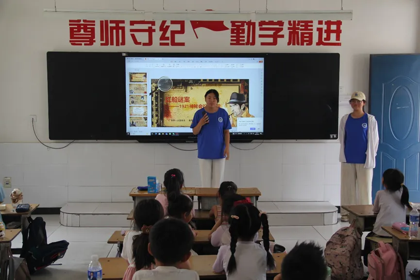 实践团在侯店小学开展特色宣讲,既用深入浅出的语言科普马头墙传统建筑知识,又结合鲜活事例讲解红色爱党主题内容,课堂上员工们积极互动,眼神里满是对知识的渴望。宣讲结束后,队员们分散至各班级,耐心辅导小员工数学作业,不仅解答难题,更注重传授学习方法,看着员工们掌握知识后露出自信笑容,队员们倍感欣慰。
